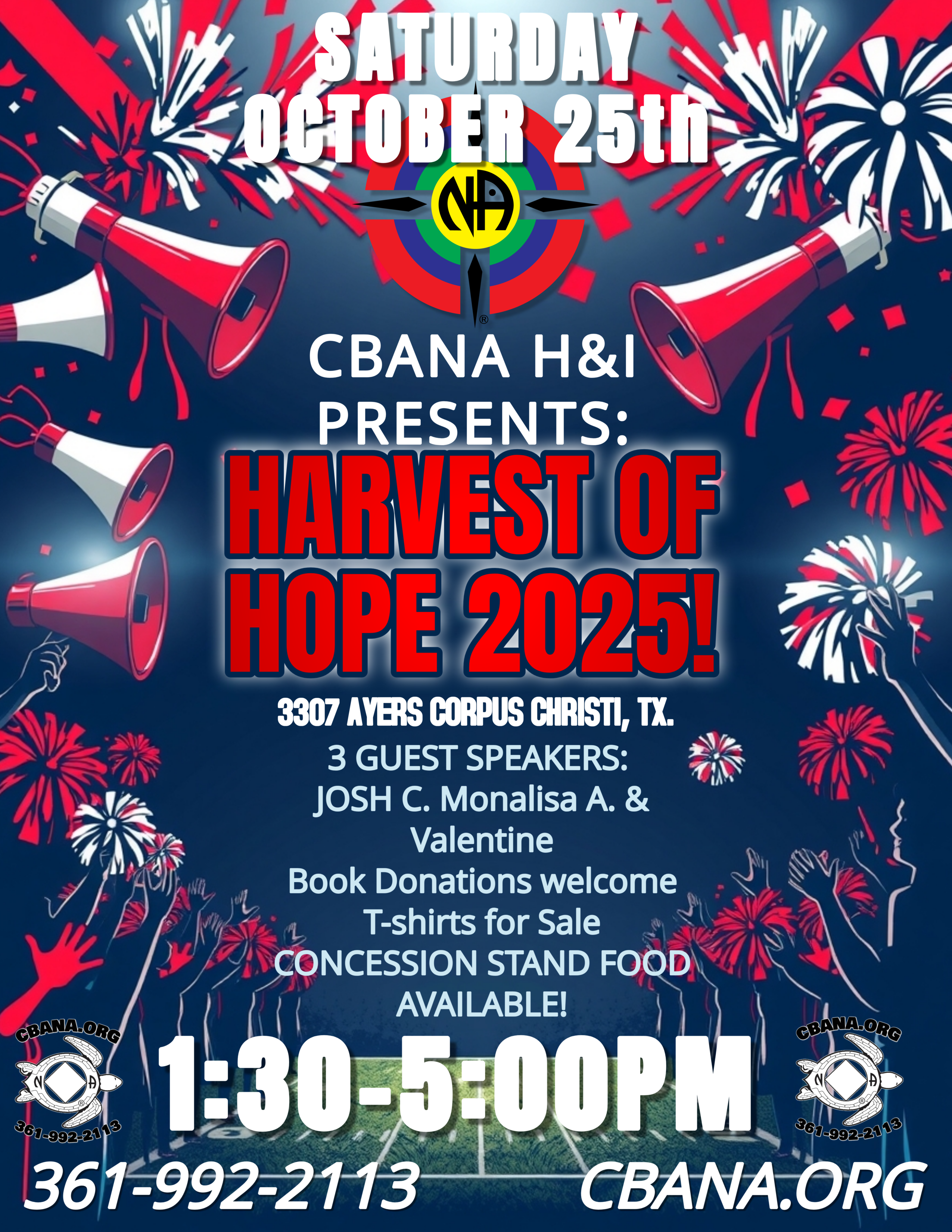 -Guest Speakers-H&I Oreintation-Book Drive-Concession Stand "pep-rally" food available-Any Basic Text Donations accepted!